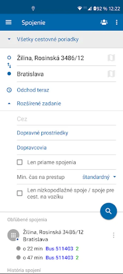 • wide range of parameters for advanced search (eg choice of means of transport, the minimum time for transfer, low-floor connections, connections for passengers with bicycles, etc.),