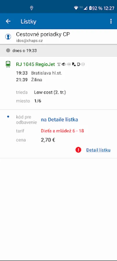 • details of the service, including the platform, track, eventual delays, current position of the service, closures, indicative fare and train shifting,