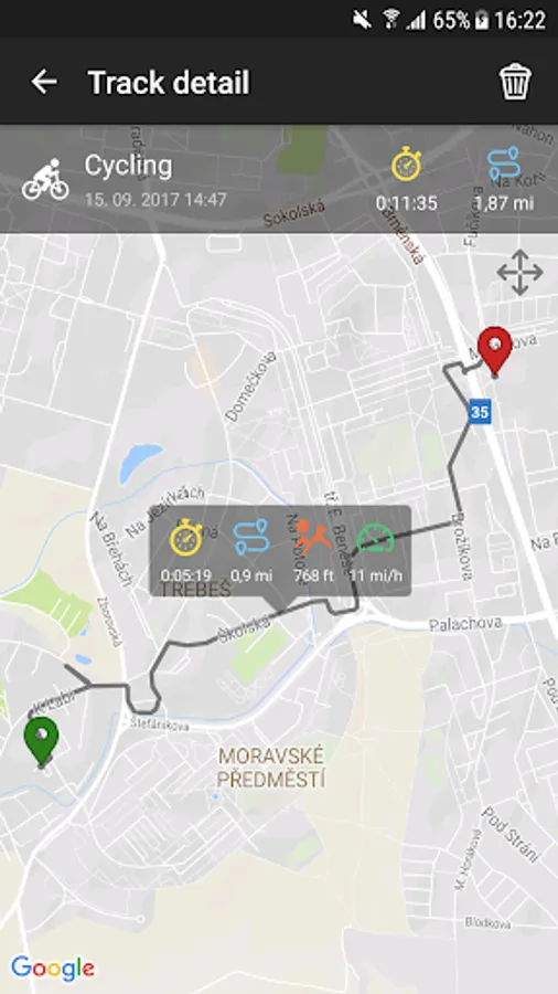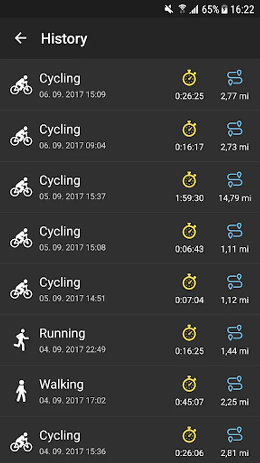 Recording can be sort in some general categories like walking, running, riding on bicycle and so on. Records are displayed in map and altitude and speed are in charts.