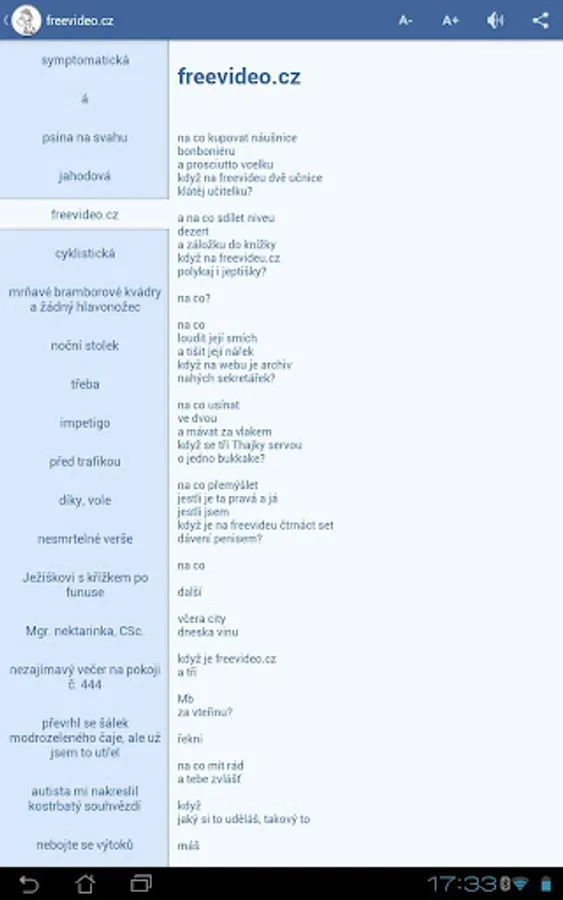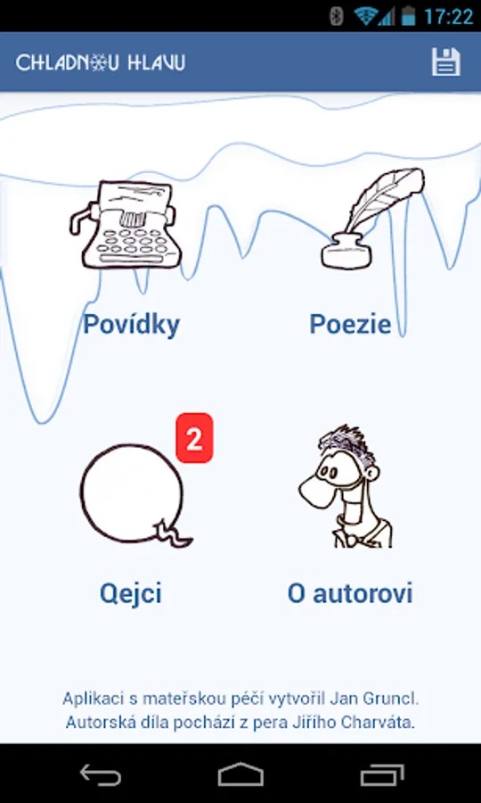 Kromě eponymous short story cycle application offers a collection of innovative poetry and complete vaginally-existential comic Qejci , the new episode to you přikutálejí almost every week.