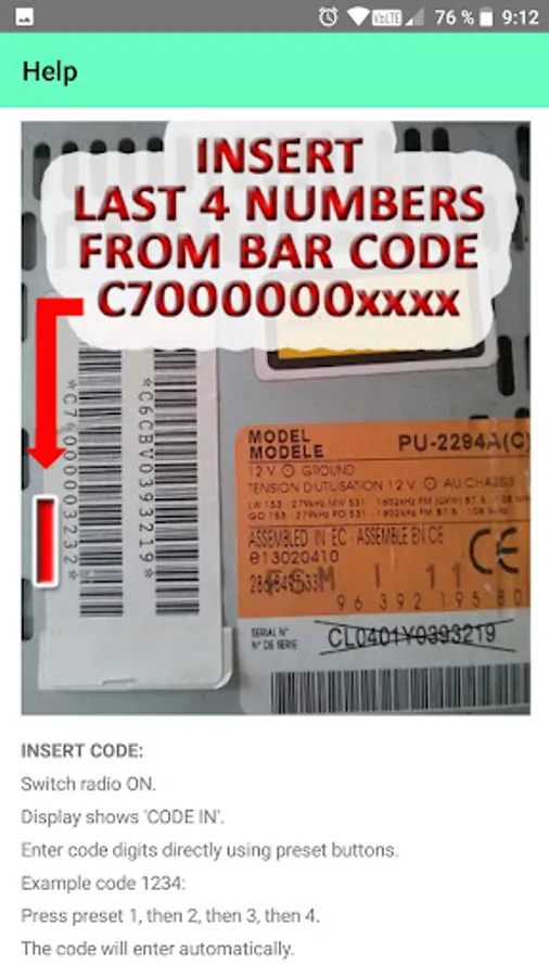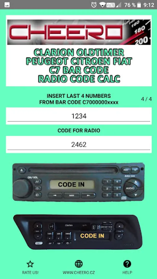 Radio CODE for PEUGEOT CITROEN FIAT radios CLARION only C7 models oldtimer.