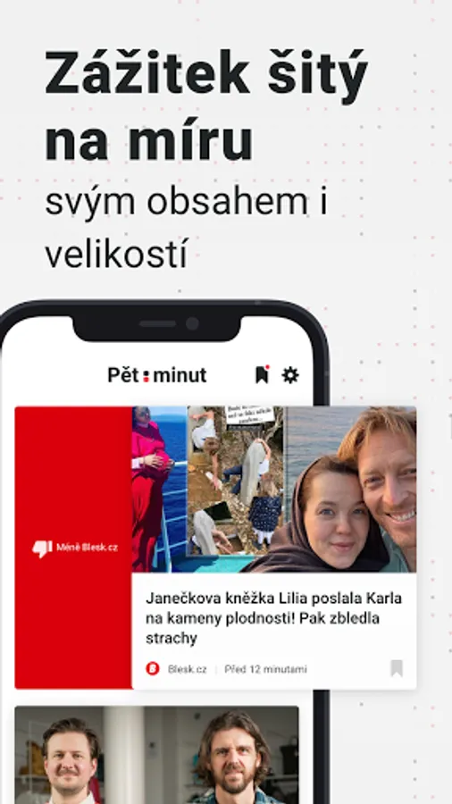 The application learns for itself which articles you like to read and thanks to that you get the best custom texts. In 5 minutes you will find everything you are interested in. We select articles from three media houses and we will add more, so there will be articles to choose from from dozens of the largest Czech websites. The pet minut application is very easy to use and thanks to the article previews you will have a quick overview, you can read the whole article at any time. All pages are adapted for each type of phone and for ideal display on smaller and larger screens.