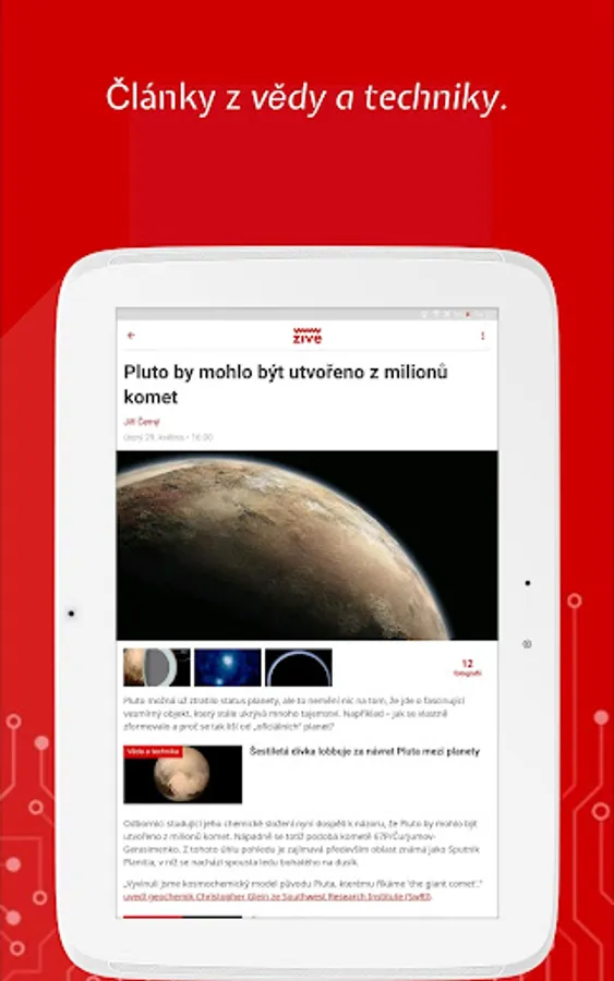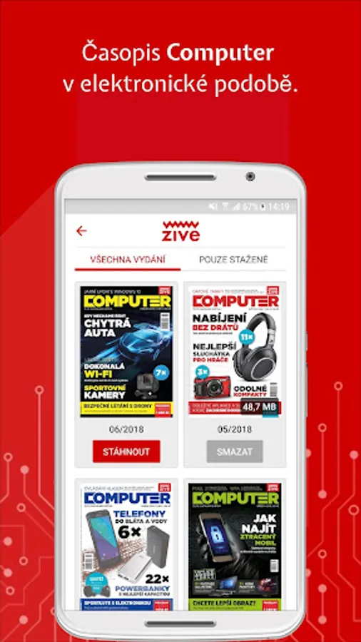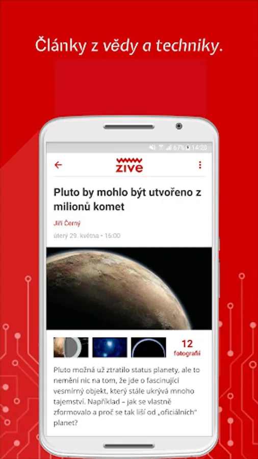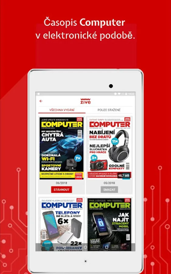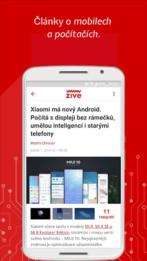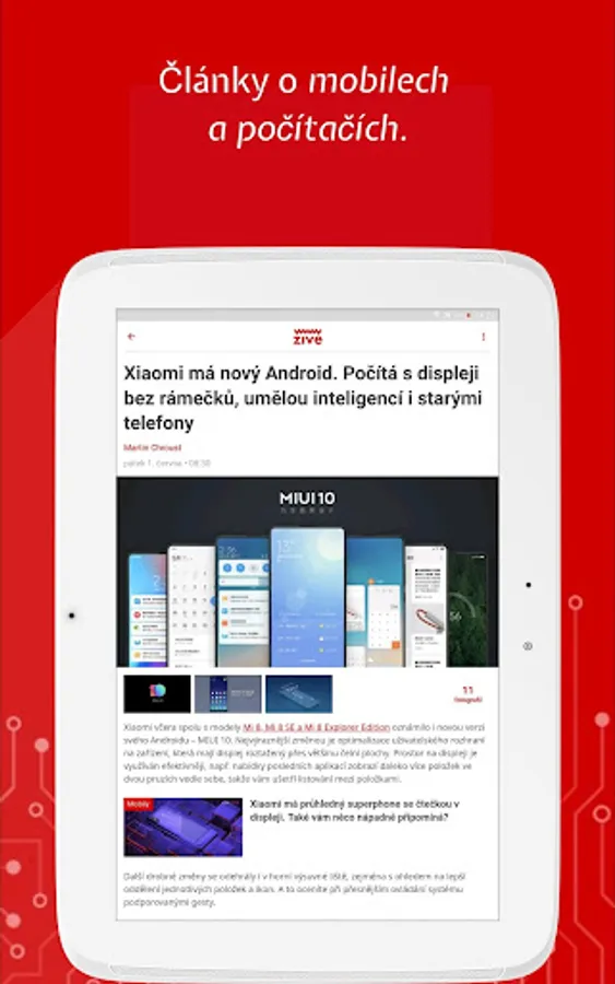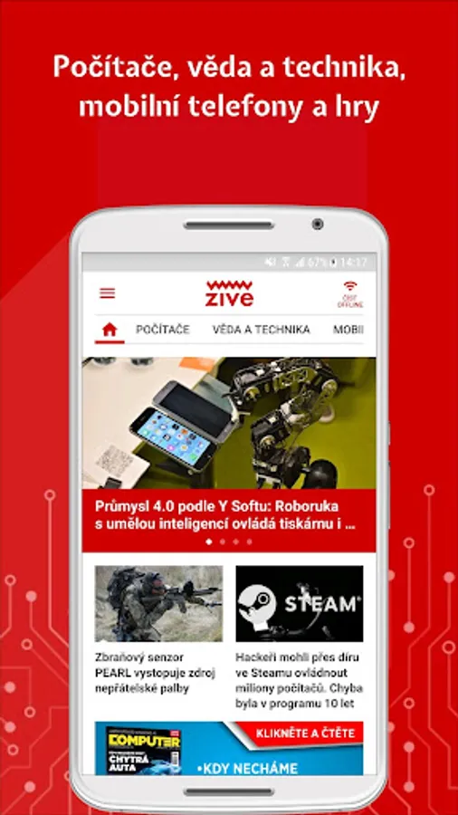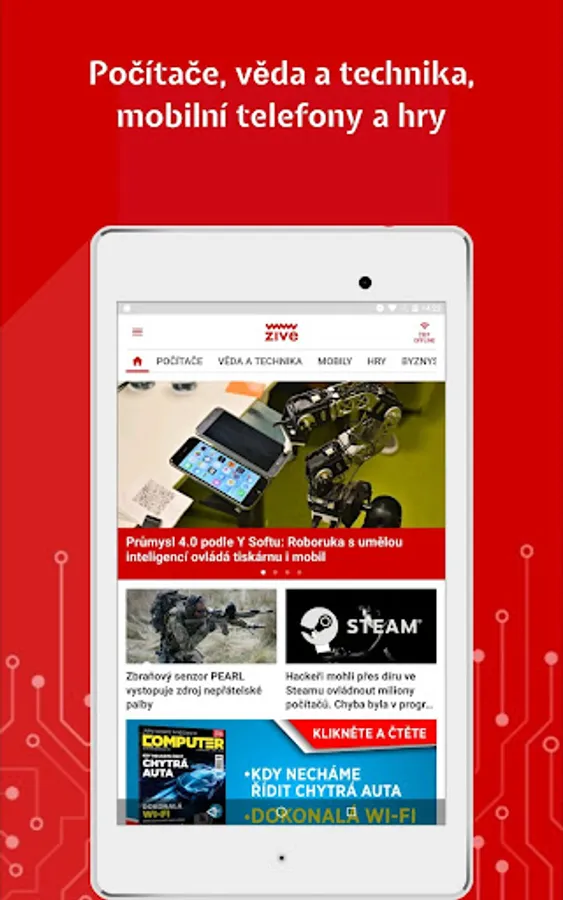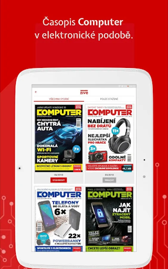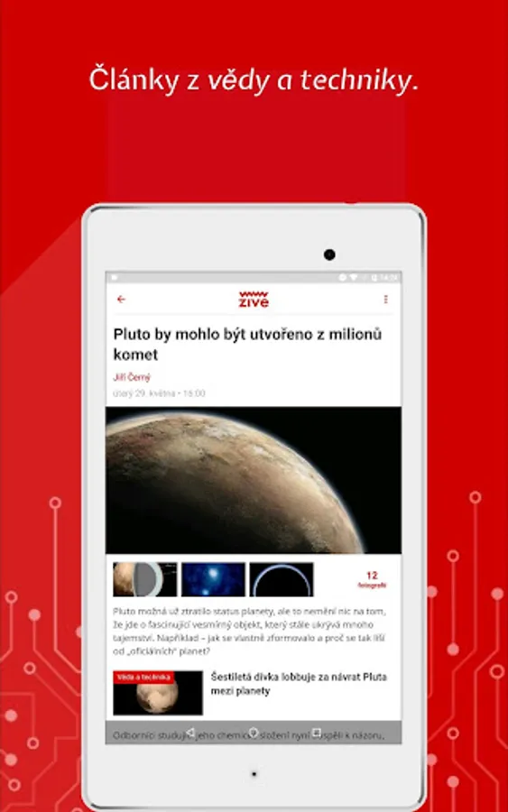 At Živa.cz we enjoy computers, the Internet, science and technology. You can conveniently read all our articles in the app. In addition to computer-based Live, you can also find the content of the MobilMania, VTM, AVmania or Doupě websites here. All articles can be saved for later reading. The application also offers the download of all articles for offline mode, where you can then comfortably read them without an Internet connection or in places with a weak signal.