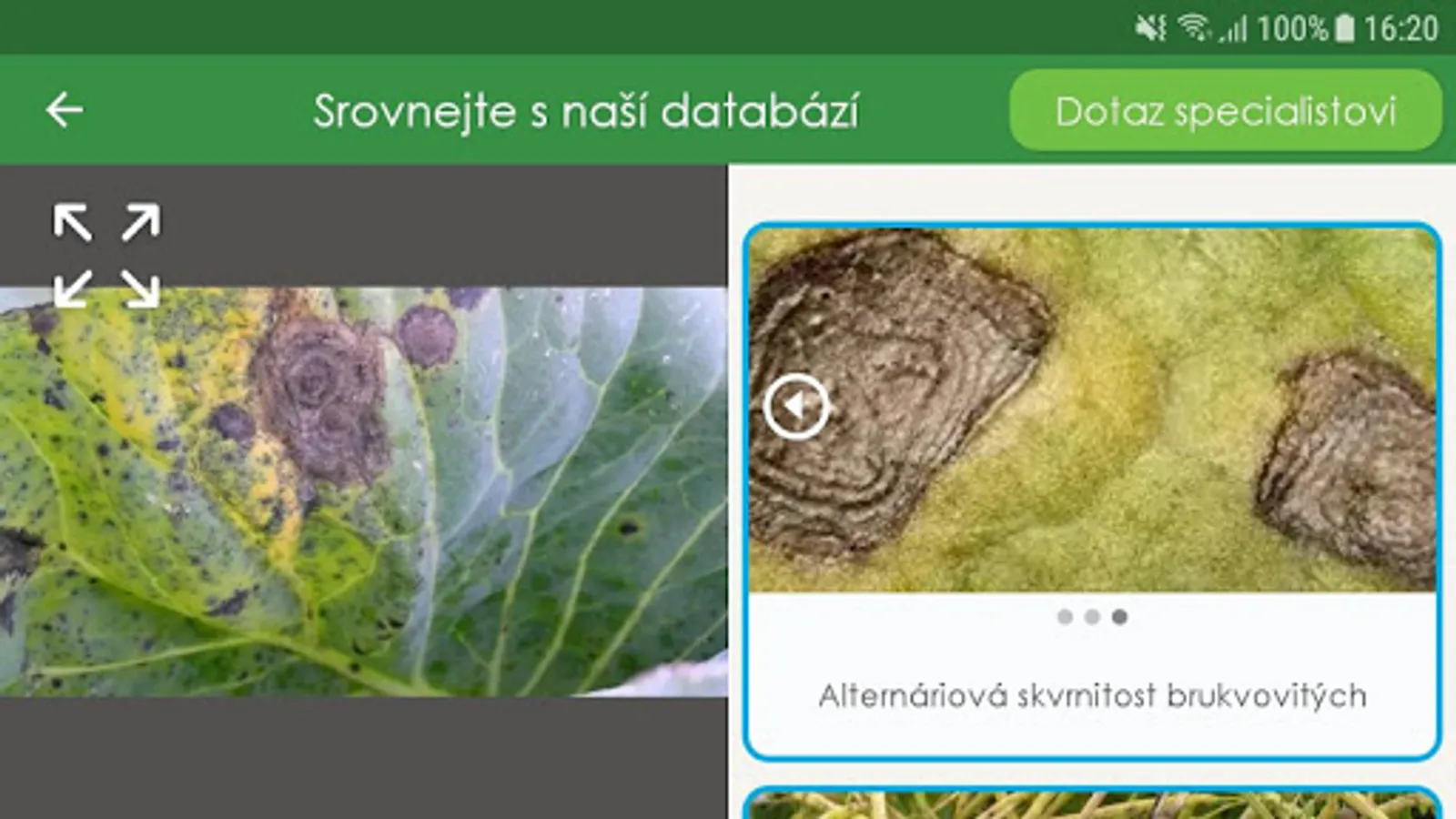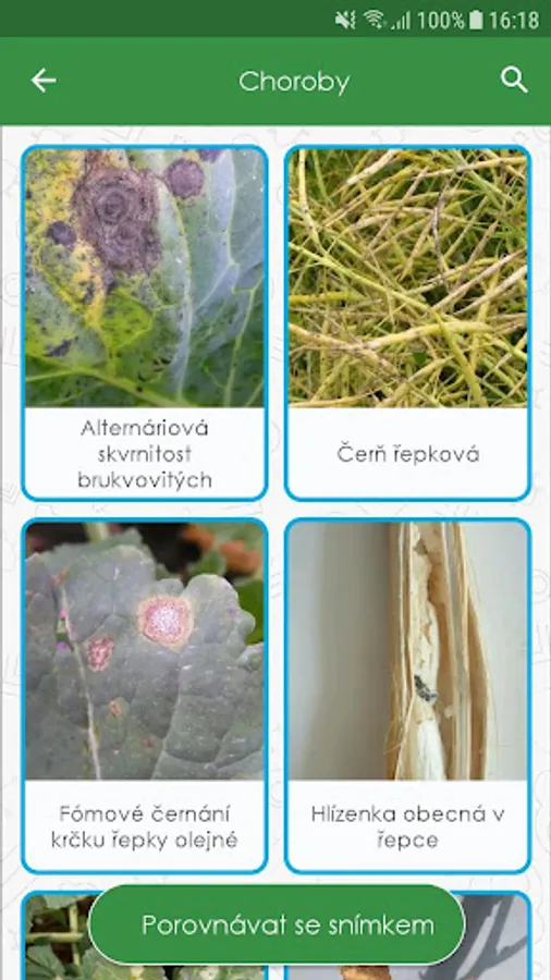 If the farmer is not sure what disease, weed or pest is present in his field, he can check his assumption / hypothesis by comparing with the database of nearly 150 most common phytopathological problems that can be harmful in cultivated cultures.
