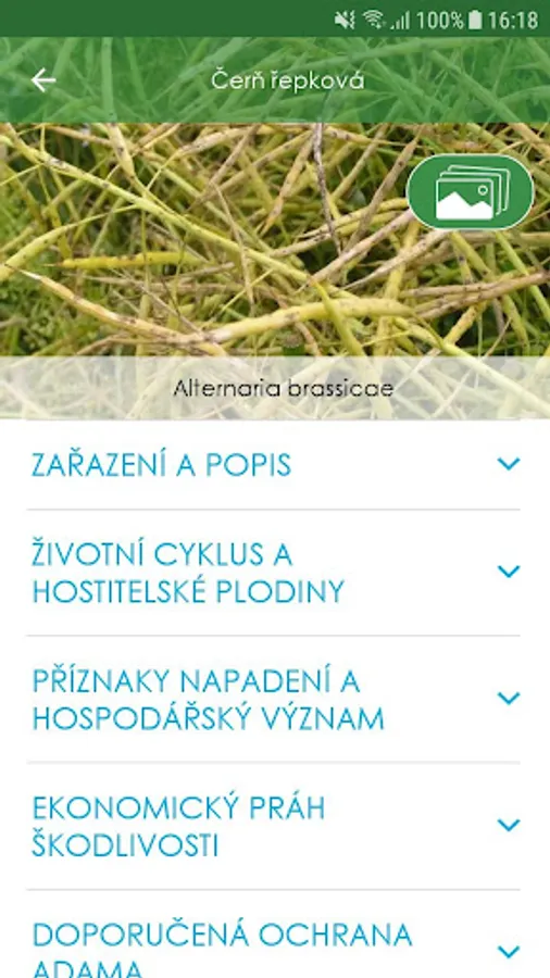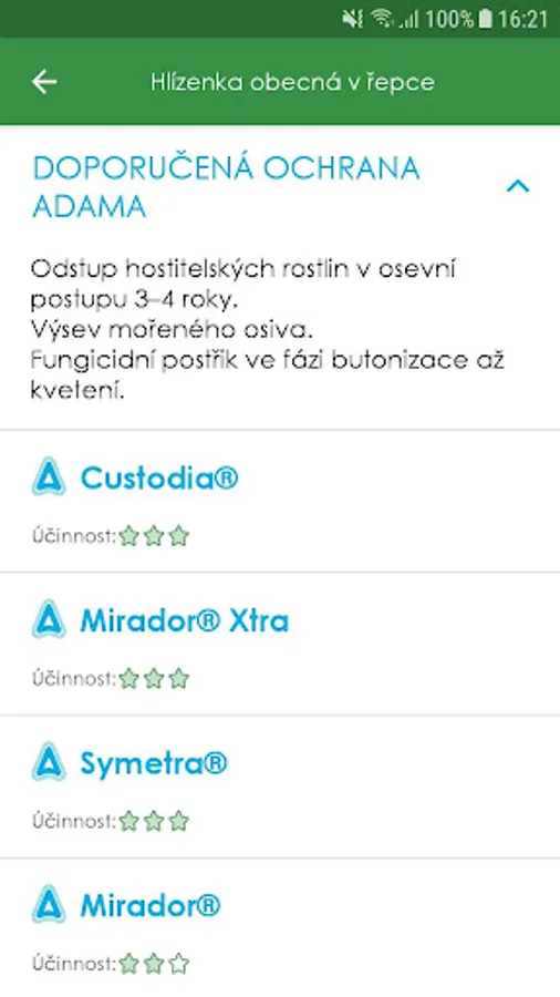 The application also contains recommendations which products from the offer of Adama CZ can solve the selected problem with evaluation of their effectiveness.