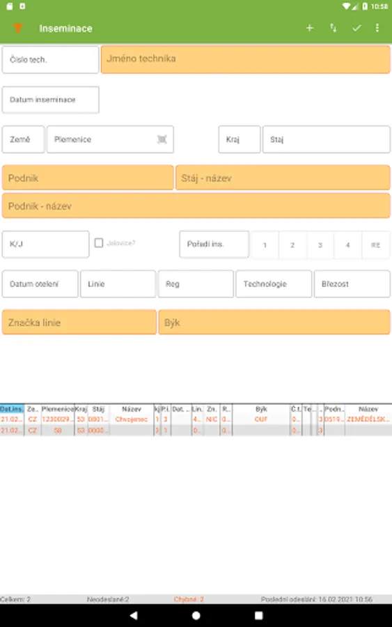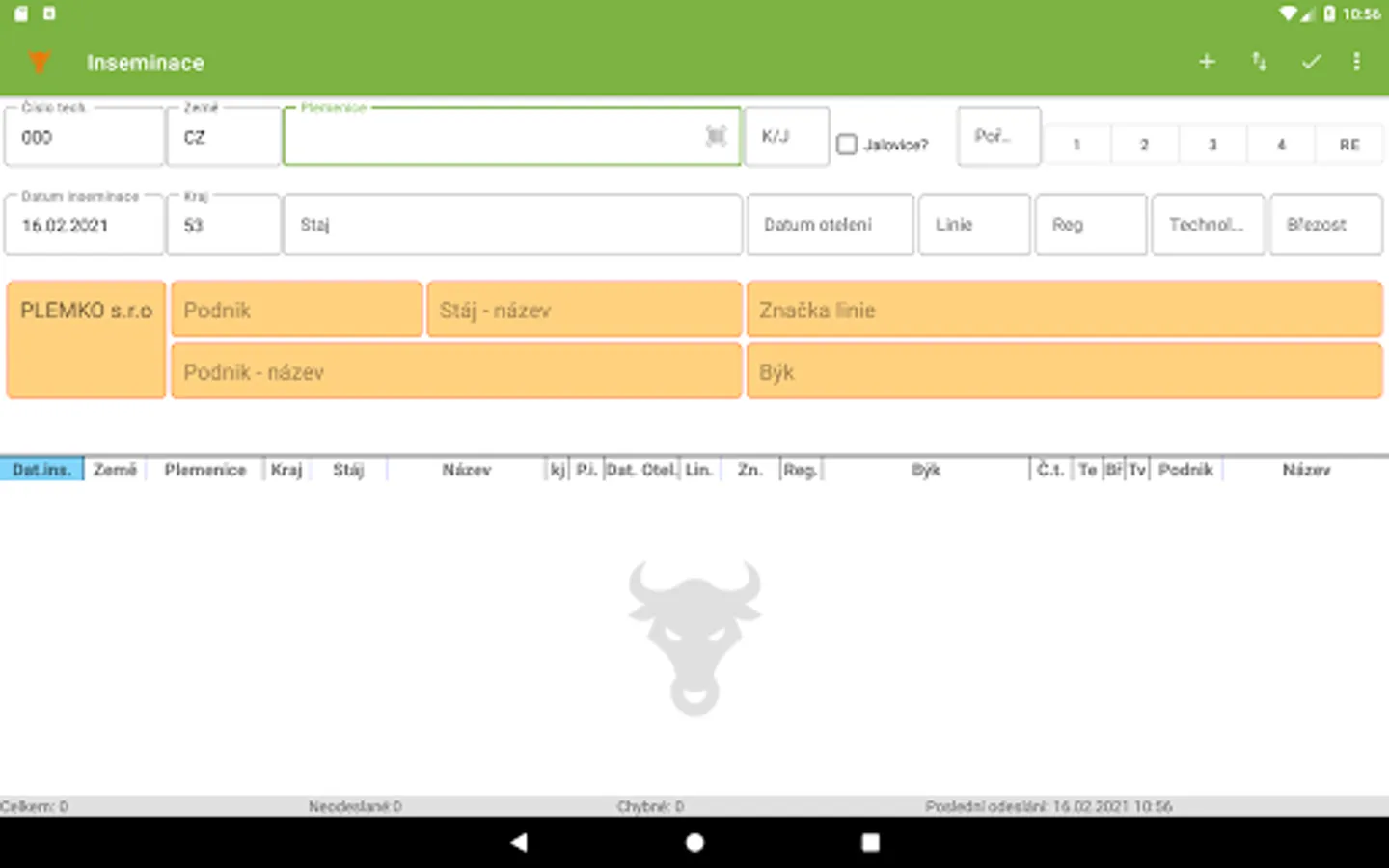 The Insemination application is intended for the acquisition and management of insemination sentences and their sending to the Taurus - Evidence of Insemination and Pregnancy Examination program from ComArr s.r.o.
