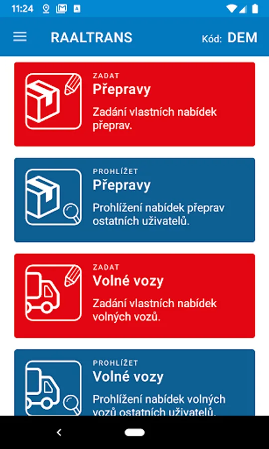 - Browsing is used to view offers from other users with the display of contacts for the ordering company. Searching in the offers is possible using filters (state, zip code, city, weight,...) or using mileage.