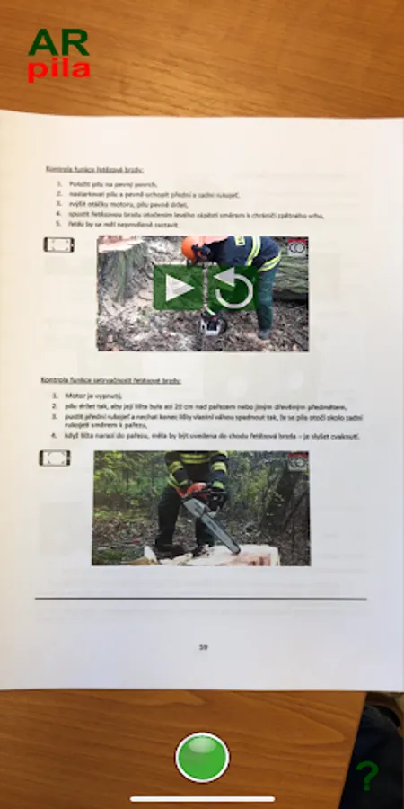 AR technology is used to extend the capabilities of the printed version of the script to include additional interactive and educational elements. Thanks to this, it is possible to interactively display selected topics and combine them with a professional educational text intended for comprehensive training for operators of chainsaws in fire fighting units.