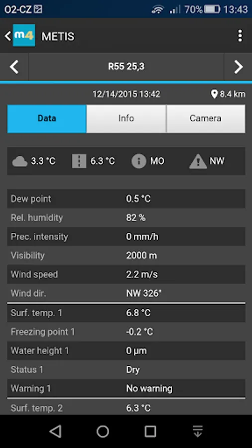 - Based on the tracking of the user the application provides basic data from the closest weather station, with a preference for stations in the direction of movement
