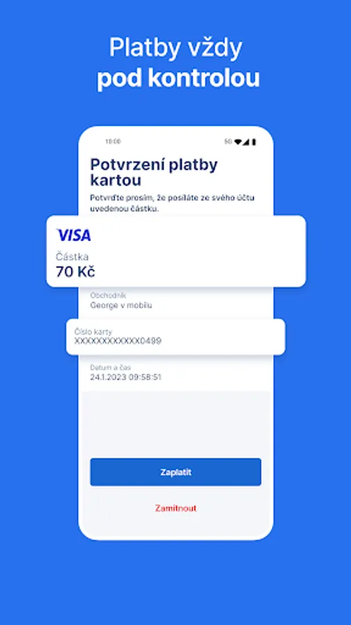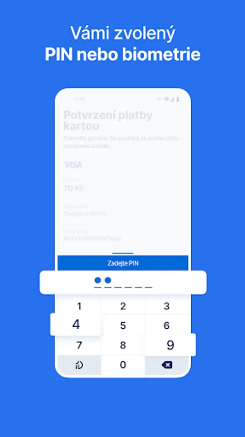 The George key application is a safer and more convenient replacement for login and verification SMS. To log in or verify a payment, an SMS message from the telephone operator is no longer needed, because the George key communicates with the bank directly. That's why you no longer need to copy SMS codes from your phone. Everything in the application is simply confirmed with your 6-digit PIN or with your fingerprint or face scan (only Google Pixel phones). In order not to forget your PIN, the application occasionally prompts you to enter the PIN code you chose during activation.