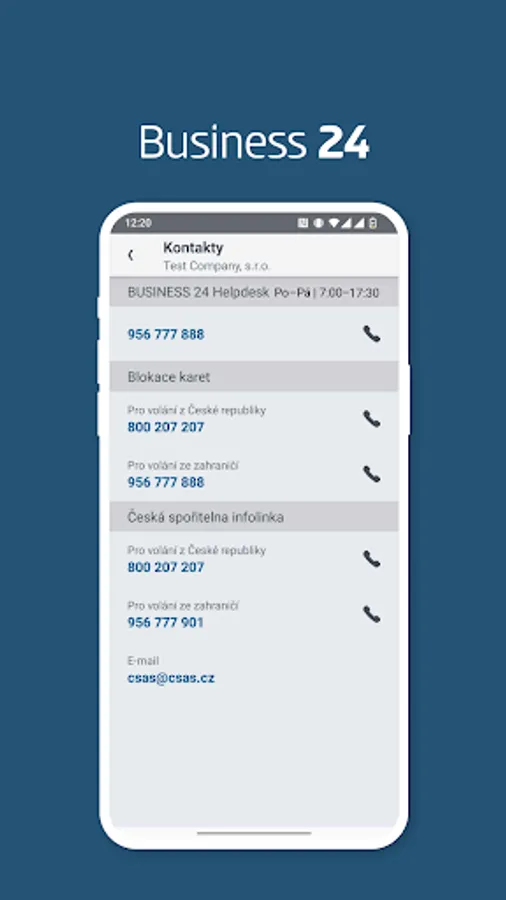 Application BUSINESS 24 Mobile Bank enables our business clients to access their business accounts.