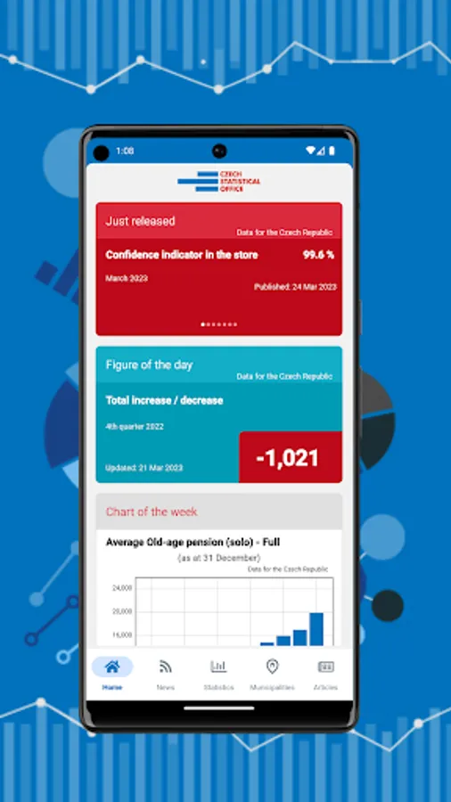 CZSO is the mobile application of the Czech Statistical Office, providing a simplified and quick overview of selected indicators, news and statistical articles published by the office. It is a useful tool for all those who want to have an overview of what is happening in the Czech Republic in the field of statistics.