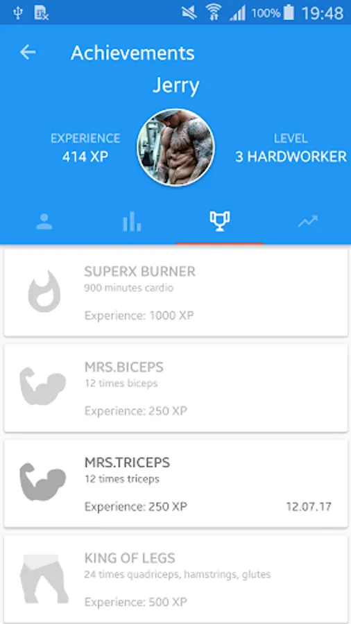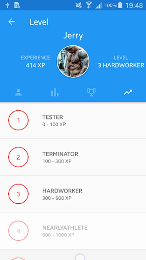 If you practice honestly, the application will reward you. You will get new levels for more rewards. You also have the opportunity to view the history of trained exercises, statistics of trained plans, experience, levels and your body information.