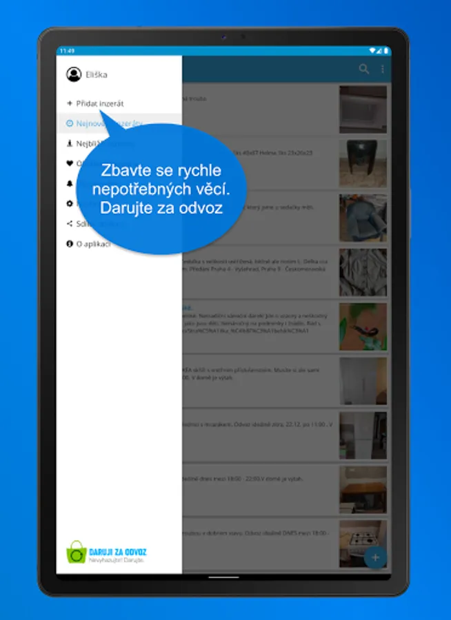 With the Donate for pickup application you can donate for example: Furniture, Clothing, Children's goods and games, Electronics, Sports equipment, Musical instruments, Mobile phones, Antiques and more, get things completely free for the price of pickup and watch the latest ads on darujizaodvoz.cz - inzerce things for removal.