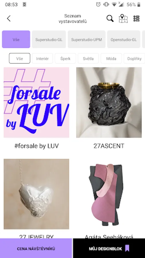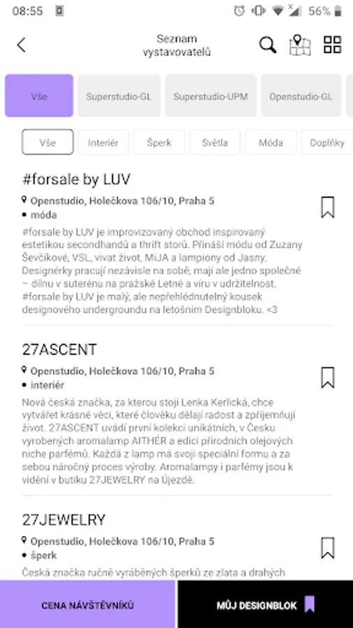 Thanks to the Designblok ’21 application, you will have a CATALOG of all exhibitors at your fingertips, including maps where you can find them, a daily PROGRAM of all events, the MY DESIGNBLOK function, thanks to which you can store what you are interested in and what you do not want to miss. Only in this application can you also vote for the first time this year on an installation that will receive a VISITORS AWARD.