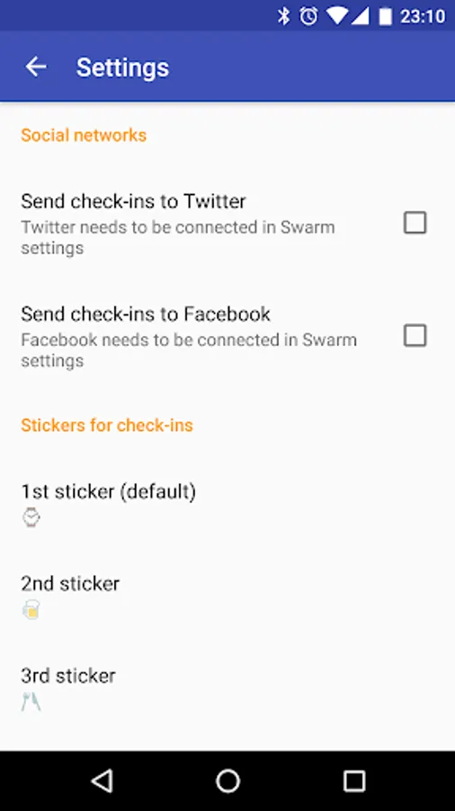 Power user? You can control Twitter, Facebook sharing and available stickers inside mobile app settings.