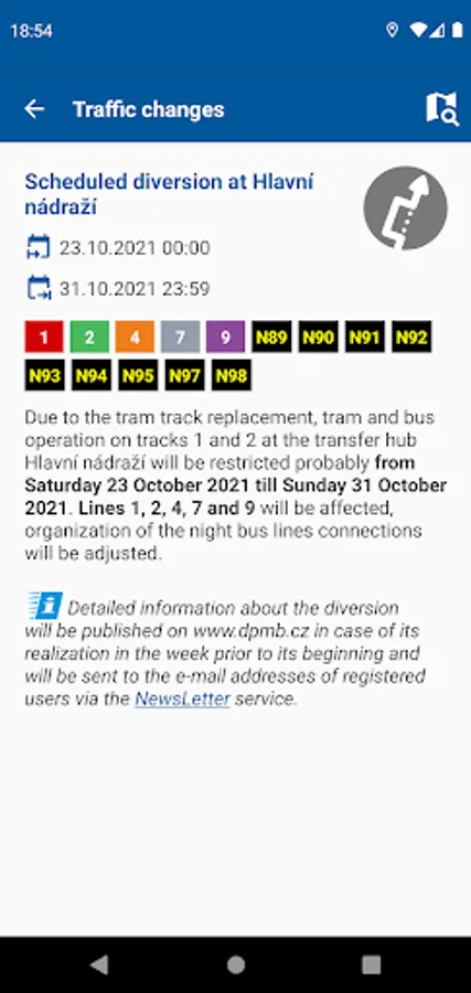 Provides updated information about scheduled changes in both Brno’s and regional public transport operation, about current GPS location of our vehicles and about transport irregularities and emergencies in real time.
