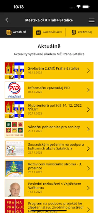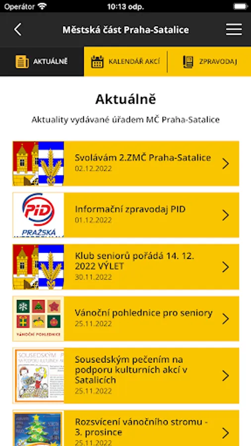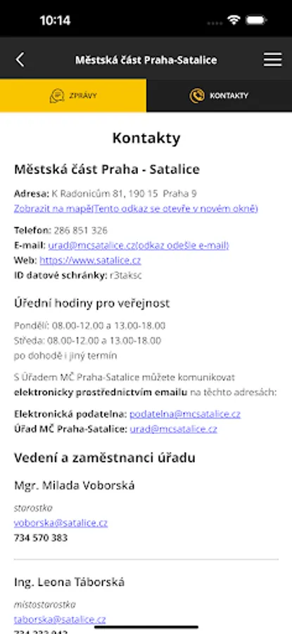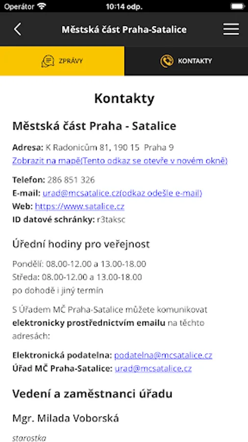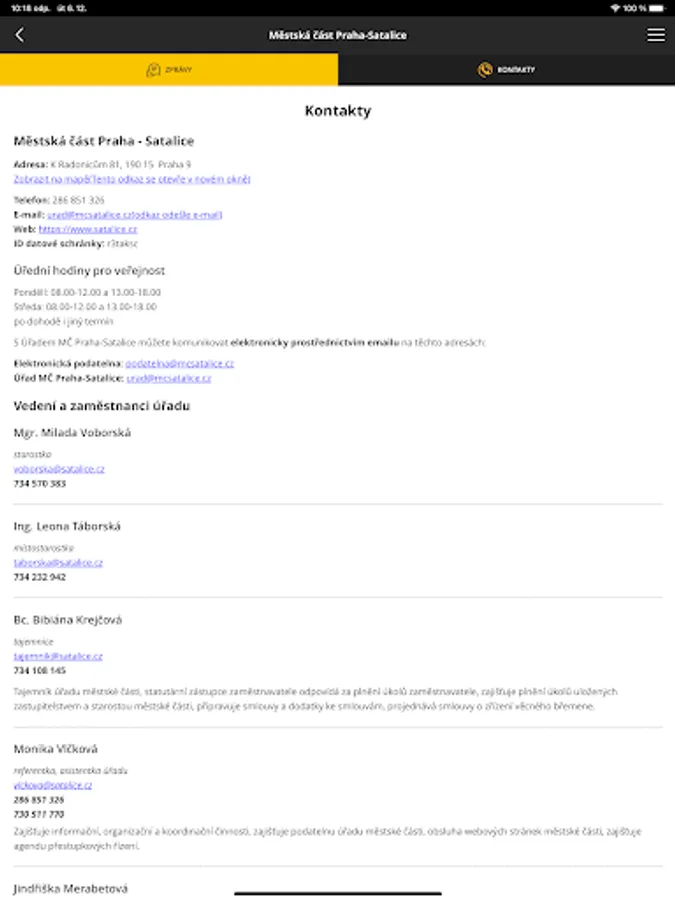 The mobile application and content are published by the office of the Prague-Satalice Municipal District. The content is distributed and managed by office staff from the office's website www.satalice.cz.