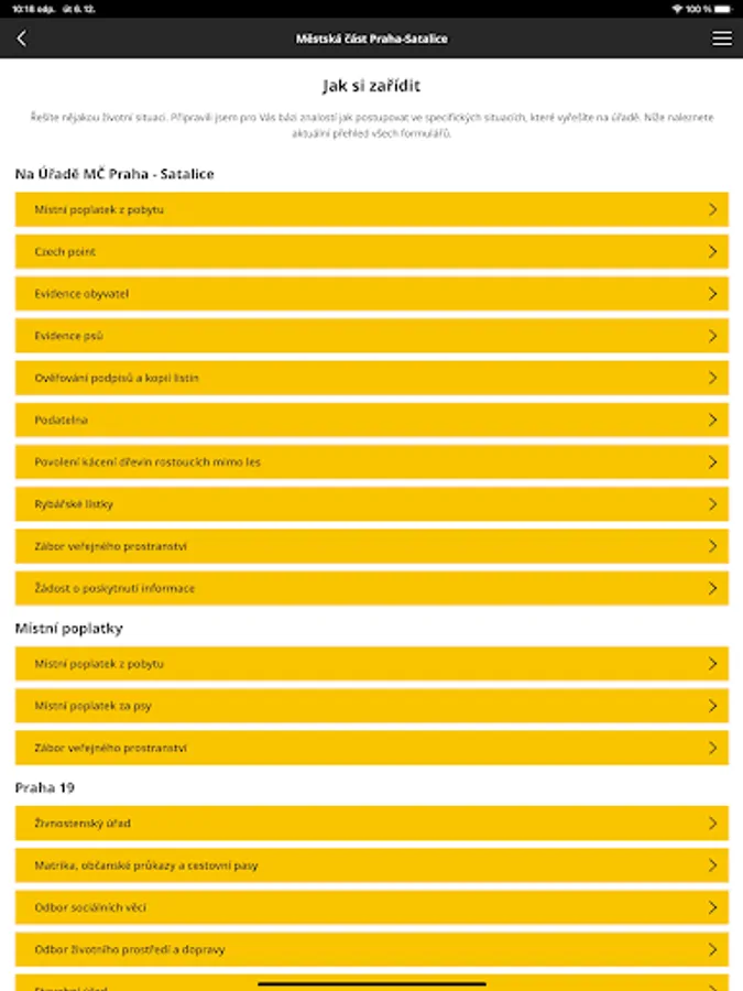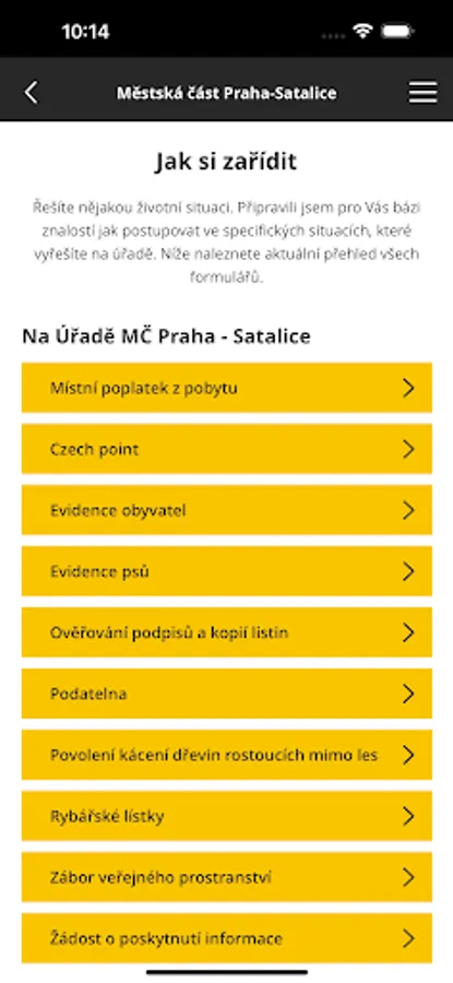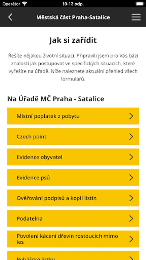 The mobile application of the City of Prague - Satalice is an electronic service that will bring you closer in contact with the office, will inform you about events in the city district and you will find here the most important solutions to life situations.