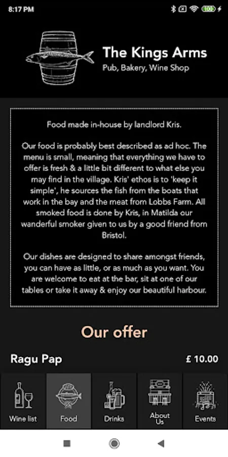 A lovely step away from the noise of everyday life. Food sourced daily from the land and sea beyond. A selection of drinks to surpass any.*