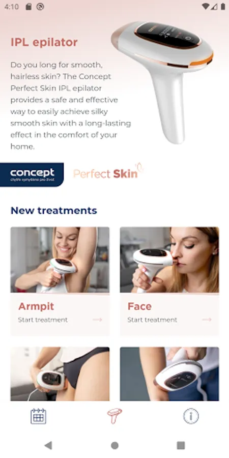 With the Concept IPL mobile app, you get your personal advisor who will help you plan the individual procedures and monitor the progress of the treatment. It will help you choose the appropriate pulse intensity level according to your skin tone and monitor the intervals between individual procedures.