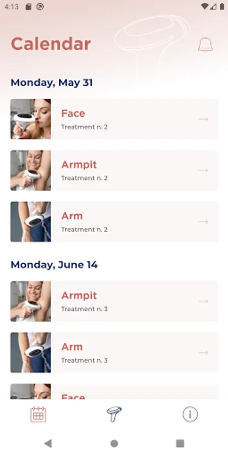 The application will guide you through the epilation process and inform you about all the treatments so that you achieve the best result.