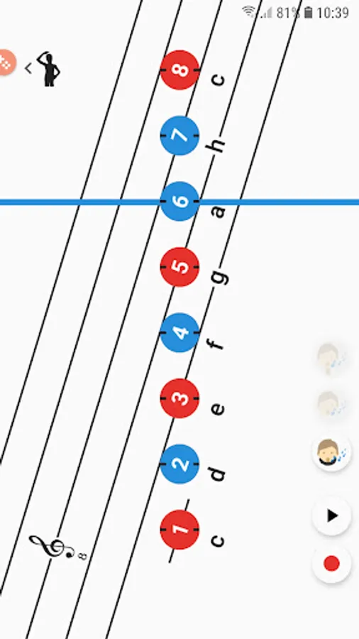 The colored tone markers are also touch buttons (right side) that play the tones of the current range. The sound strength must be adjusted in Settings-Sounds-Media.