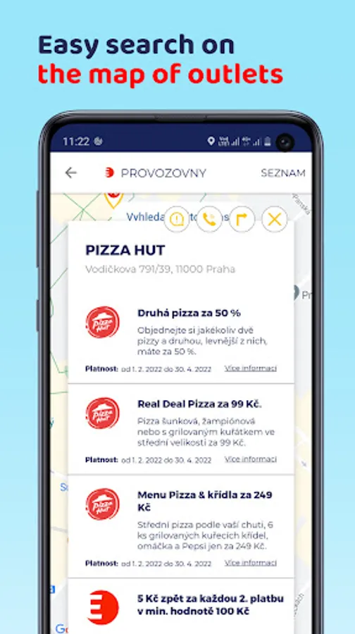 Find out where you can pay with the card. If you allow the application to access location services, the application will always display a map or list of nearby outlets in your area. You can easily search for outlets in another location by entering a keyword or address.