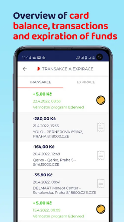 Get an idea of how much you spend, how much you have left and when your funds expire. In the application, you will always find the current balance, can check the payment history in your statement and expiration date of your funds. The application also allows the sending of transaction notifications.