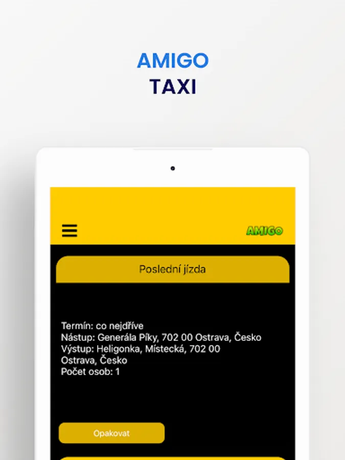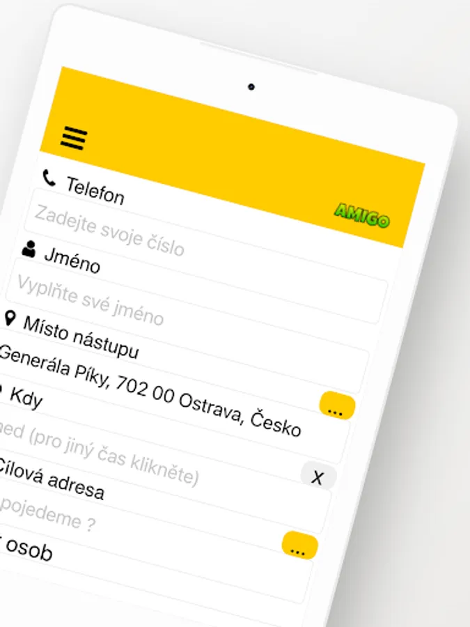 Ordering a taxi couldn't be easier. Fast and convenient ordering in a few clicks. AMIGO TAXI is an intermediary for taxi services, on a Czech application that connects you with professional drivers. You will also be transported by your pets, or even your goods and shipments. Our transport is a combined transport of people and parcels, so that we efficiently use all the cars to the maximum. You can order a car via a mobile or web application for yourself, friends, colleagues or customers. You always know the final price in advance, and the fare cannot be overcharged if you comply with the order. You can pay in cash, with a payment card via the payment terminal in each car, payment by card in the application and corporate clients on an invoice. You can use the option of logging in and creating a registration in the VIP zone and take advantage of all the benefits and discounts associated with it. An already cheap taxi can be even cheaper for you. You can rate the driver and track the car's arrival and arrival time. You can track your route even while driving. A receipt with a detailed description of your ride is a matter of course. You can use our application to drive in Ostrava, Hlučínsko, Orlová, Havířov and Karviná. We will keep you informed about the expansion of scope. Sincerely, Brabec Lukáš +420 770 60 90 50