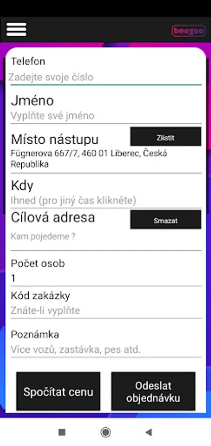 beegoo is a purely Czech application created for transporting people from point A to point B, both in your city and outside it. Our trained drivers will be happy to come for you within a few minutes after confirming the ordered ride. Now all you have to do is download the application to your mobile and we can go.