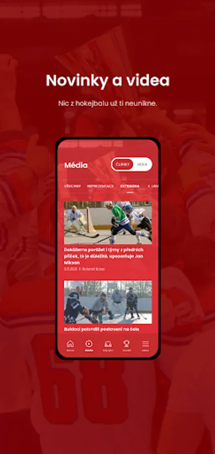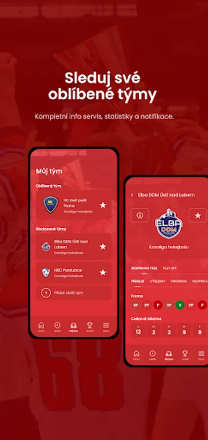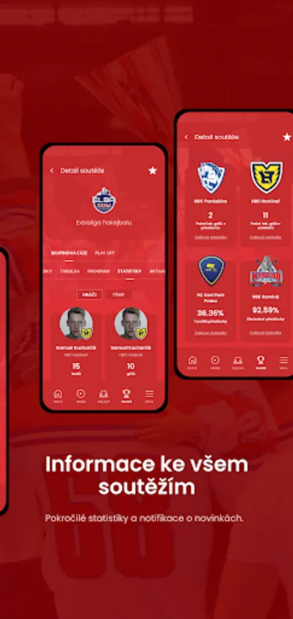The Hockeyball mobile application serves all fans, players and other members of the Czech hockey movement. It was developed by the Czech-Moravian Hockey Association in cooperation with the Czech IT company eSports.cz. The application brings complete information and content about Czech hockey competitions, matches and players. In addition, it offers, for example, live notifications from matches or the opportunity to personalize content with your favorite teams and competitions.