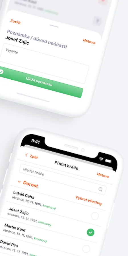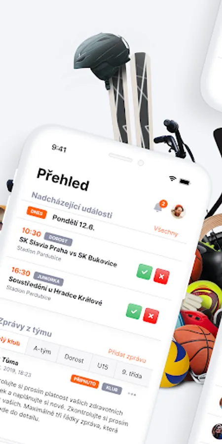 Main overview – communication with players and parents from individual categories, including the possibility of their answers.