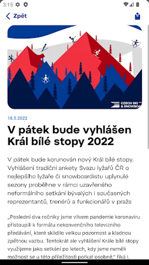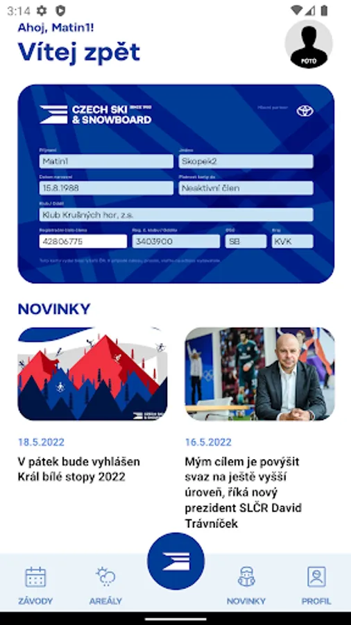 The official application of the Ski Association of the Czech Republic is intended exclusively for members of the ski association. Each member logs in to the application with their user account and can edit their profile and membership, within which there is also a membership card together with an overview of ski resorts, races and news from the ski world.