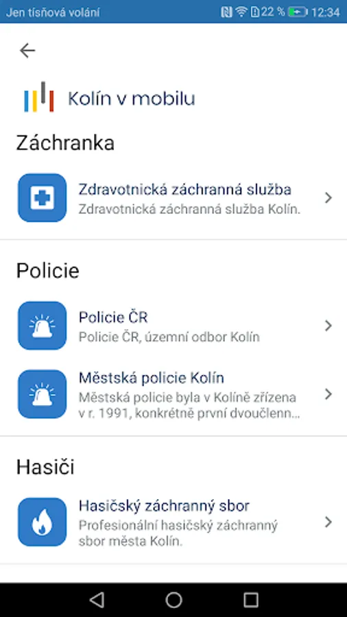 • SOS contacts (rescue service, police, fire brigade, city police, hospitals, gas, water and other accidents),