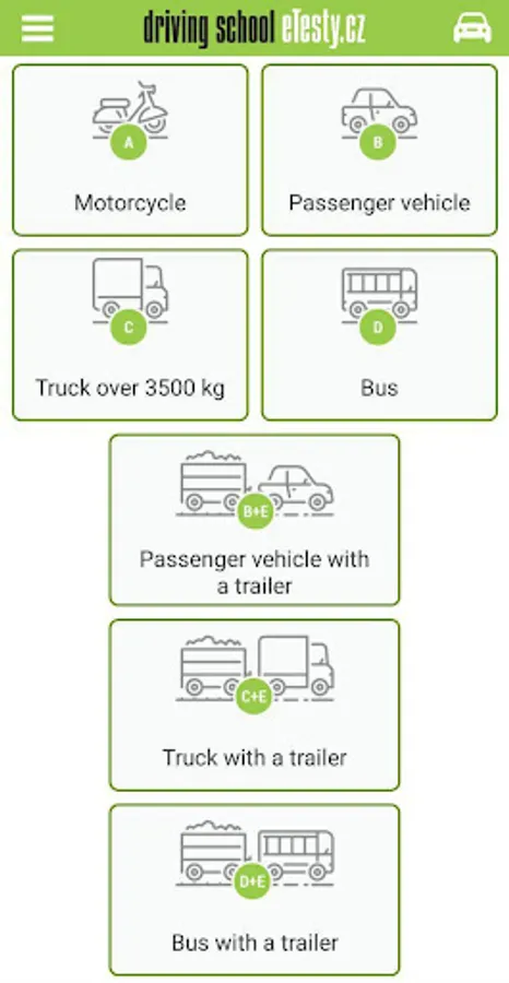 - set of current questions of the official Ministry version (eTesty) for all the groups of driving licenses