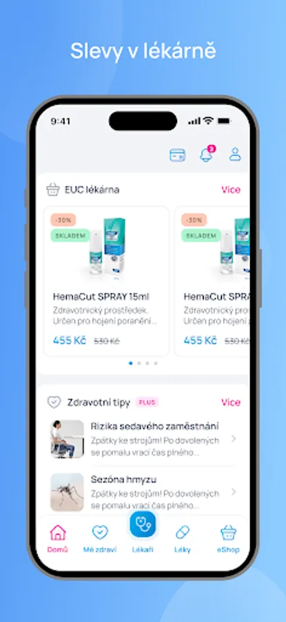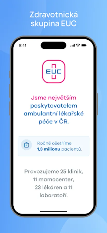 Welcome to the world of modern health care with the mojeEUC app and get benefits in all our pharmacies and many useful features that we are gradually expanding within the network of EUC clinics. EUC is the largest provider of ambulatory medical care in the Czech Republic.