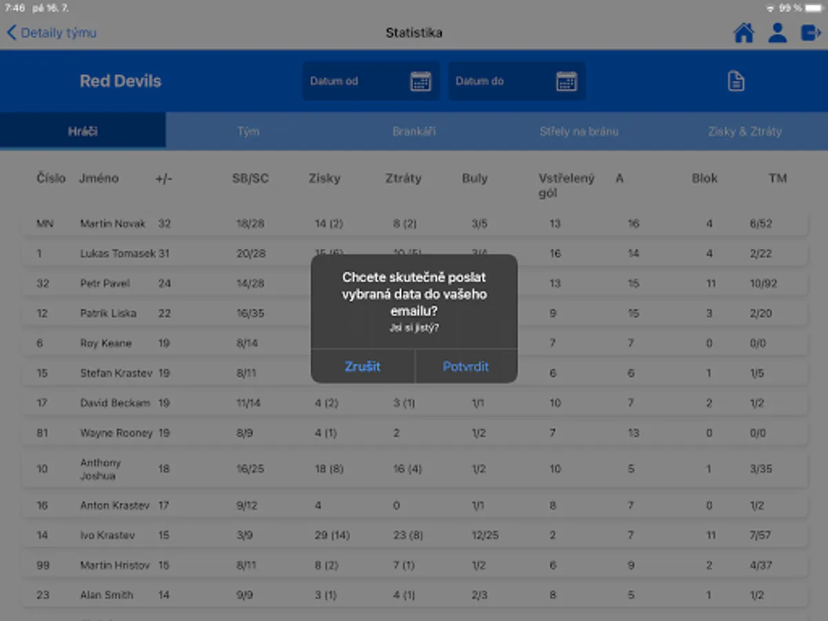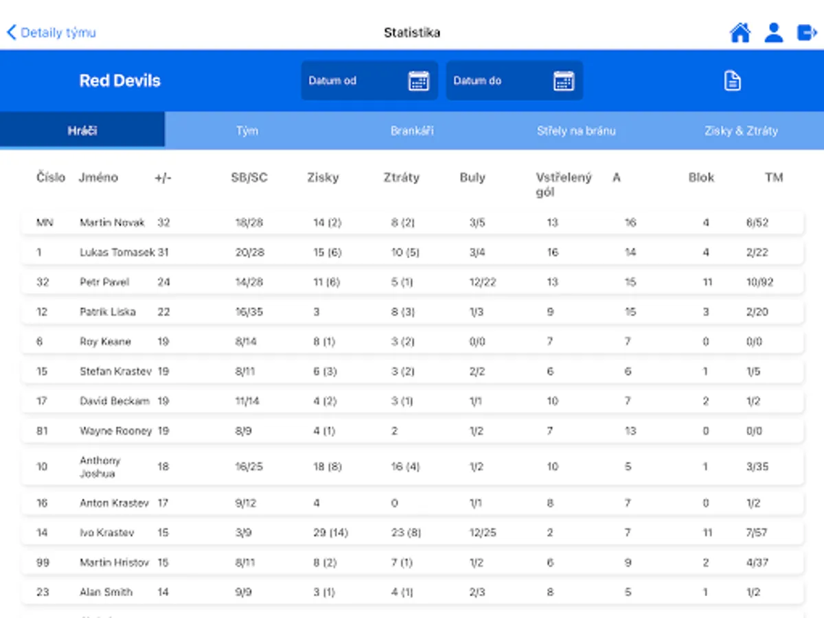 Application designed for collecting statistics data from floorball matches and their immediate or subsequent evaluation in order to improvement the team's game performance.