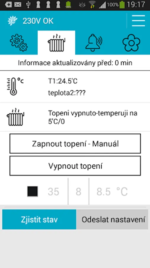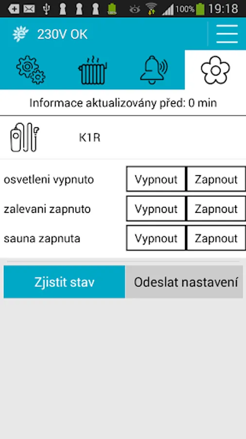 Of course, after requesting the display of the current system status, temperature in the house, outdoors or even in a wine cellar. The application now allows you to control multiple objects.