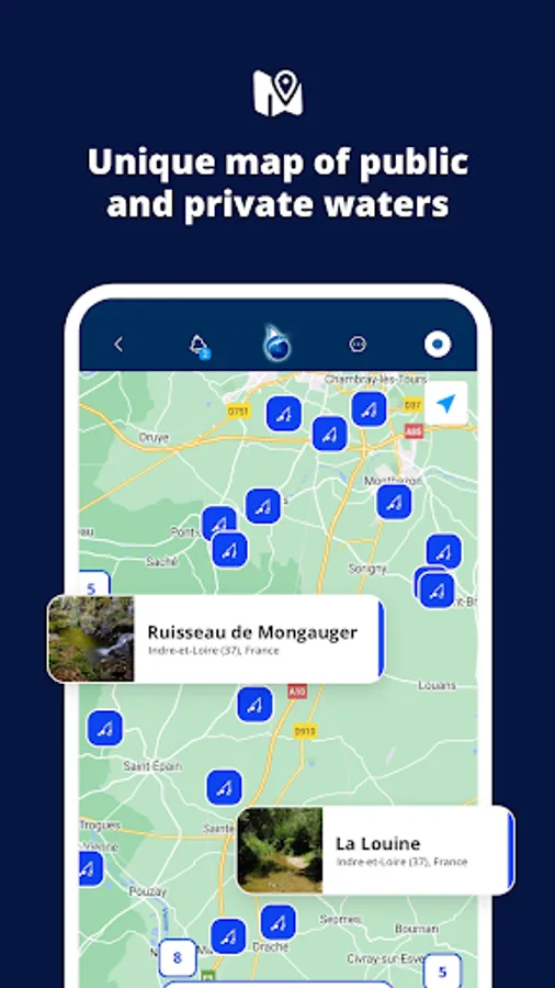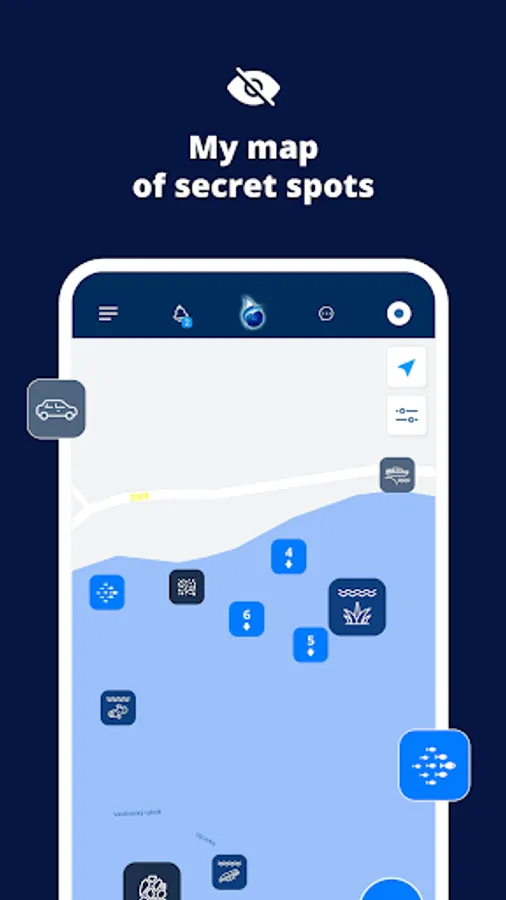 Easily save all your important places on the map from the feeding place through the caught fish to the sunked tree in seconds. Only you can see your entered places! But you can share your places with your friends. For example, if you want to make arrangements and find each other more easily in specific places by the water.