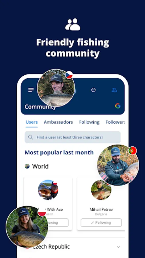 Anglers from all over the world share their successes here. In addition to catches, they also capture the beauty of nature and the relaxed atmosphere that accompanies fishing. Are you interested in specific content? You can filter accounts, for example by country. You can easily find your friends using Gmail contacts. To expand your fishing horizons even more, don't forget to follow our ambassadors and top 30 anglers for each country.