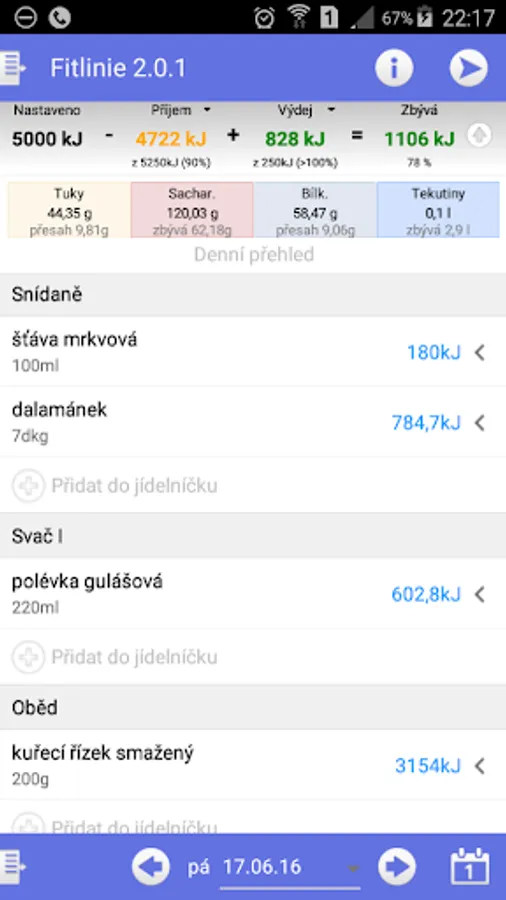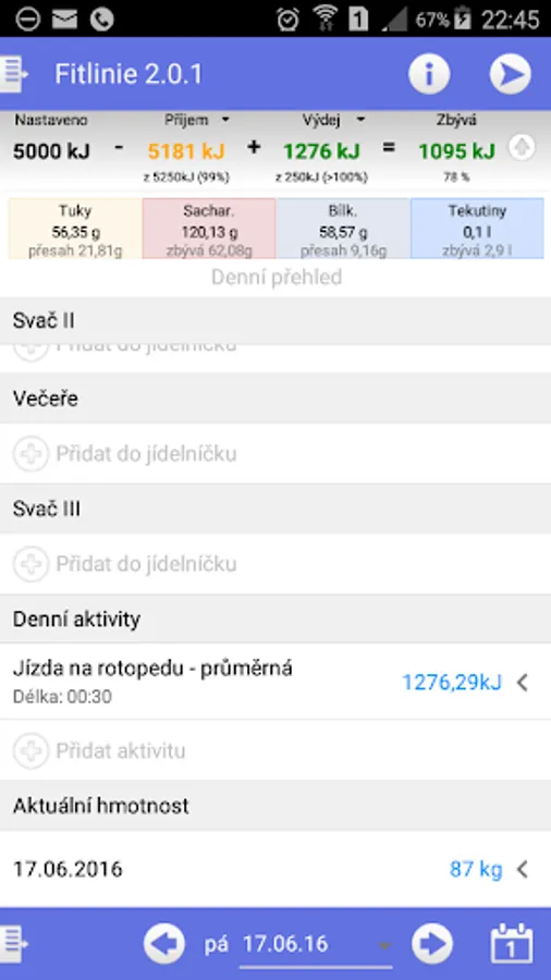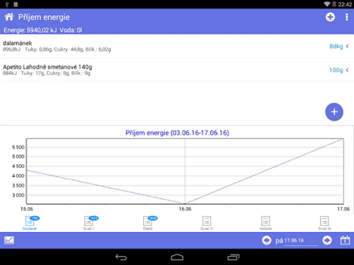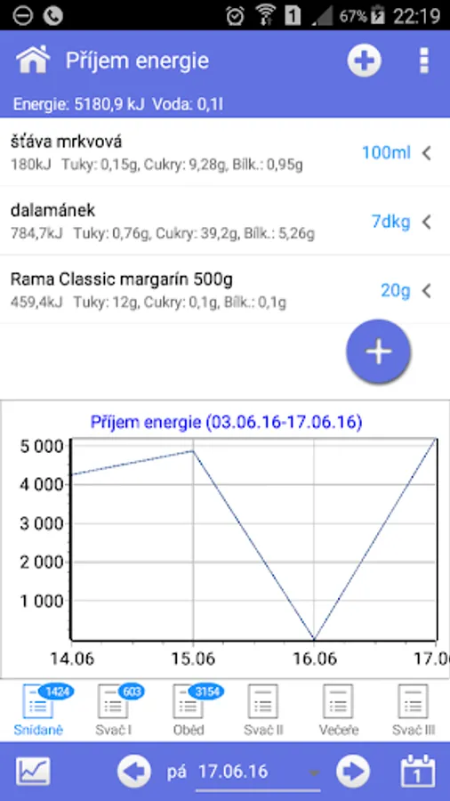 Change of body weight (lose weight or gain weight) will help module "energy intake". It contains an extensive database of foods including nutritional (caloric) values. Allows you to monitor energy intake, provides control over the amount of fat, sugar, protein and vitamins in your diet. You will know exactly what, how much and when you eat, and that a great deal to contribute to faster and more effective your weight changes.