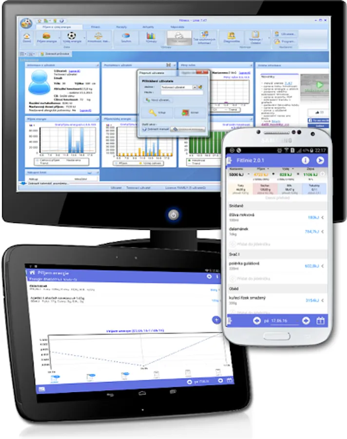 Data transfer you to the program Fitlinie for PC powerful tool for external display and edit data. All the data, therefore, you will have to transfer your mobile device always at hand and can be edited at any time.
