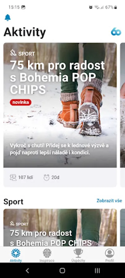 The 60 dnů aktivně a zdravě (Active and Healthy for 60 Days) application enables you to fulfil various types of activities and challenges. You can compete, entertain yourself, and find an inspiration for a better, healthier life.