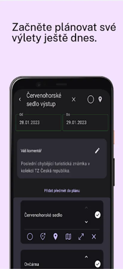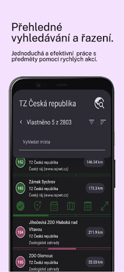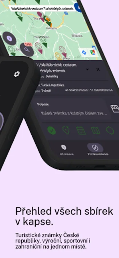 Authorization is available through the Tourist Stamps website, authorized users can add and retrieve their items from collections. Unauthorized users do not have their items synchronized via the web, but they can also withdraw grades. You can use a map or a list to search. Items can be filtered and sorted. There is a planner that makes it possible to create trips from downloaded items. In addition, it is possible to display news and the ranking of collectors via the web interface.