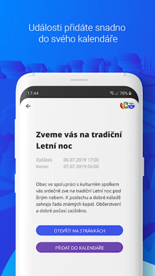 It is also possible to view the news in the application without internet connection. Easy to add to your own calendar is available for events with date and time.