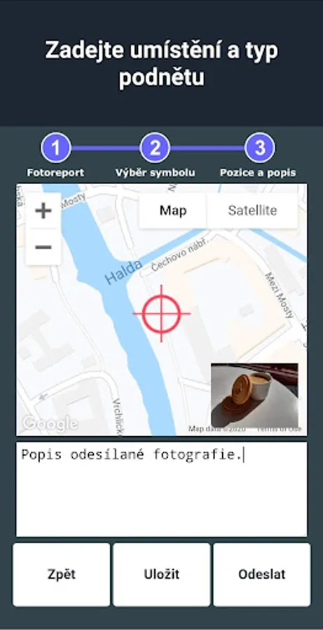A snapshot is sent "as is" with the position of your device. Sent data does NOT contain any additional (private) information contained in your device.