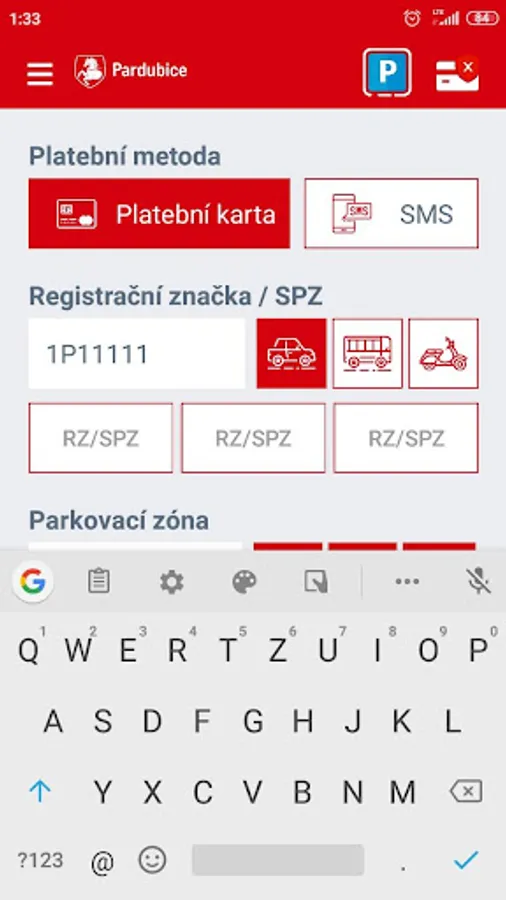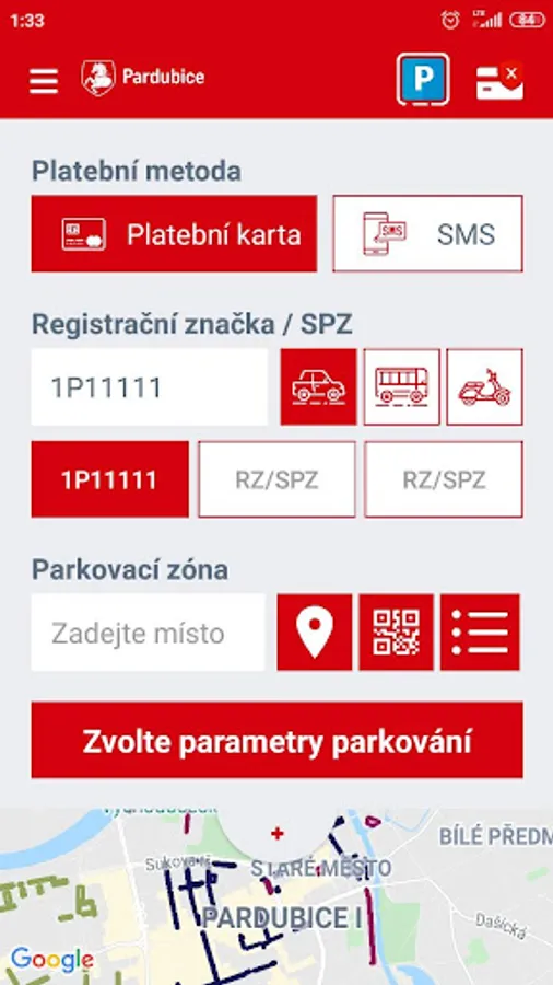 The ParkSimply Pardubice version is focused on electronic payment of parking fees in the paid zones of the city.