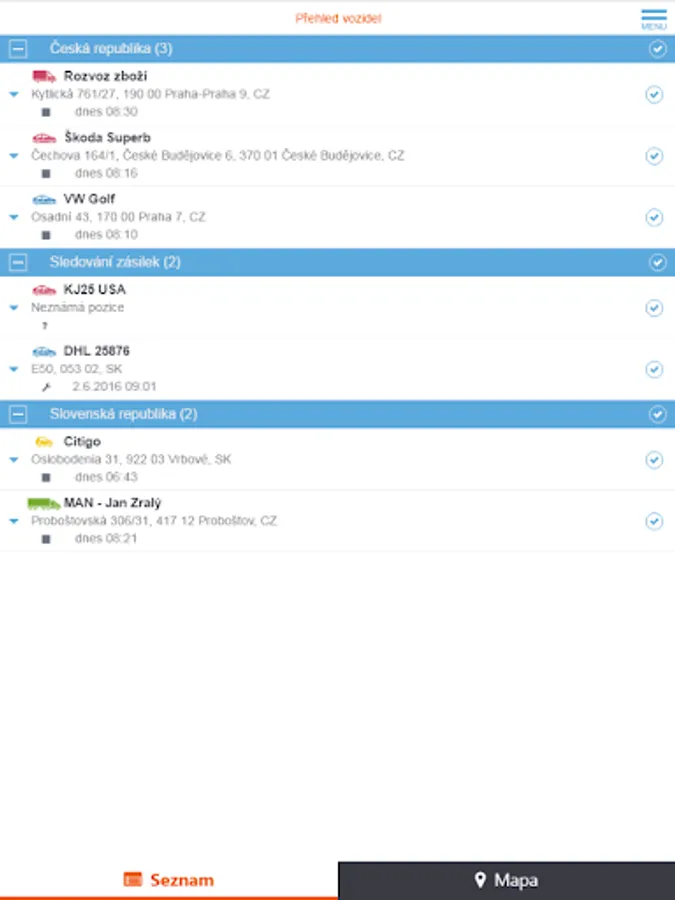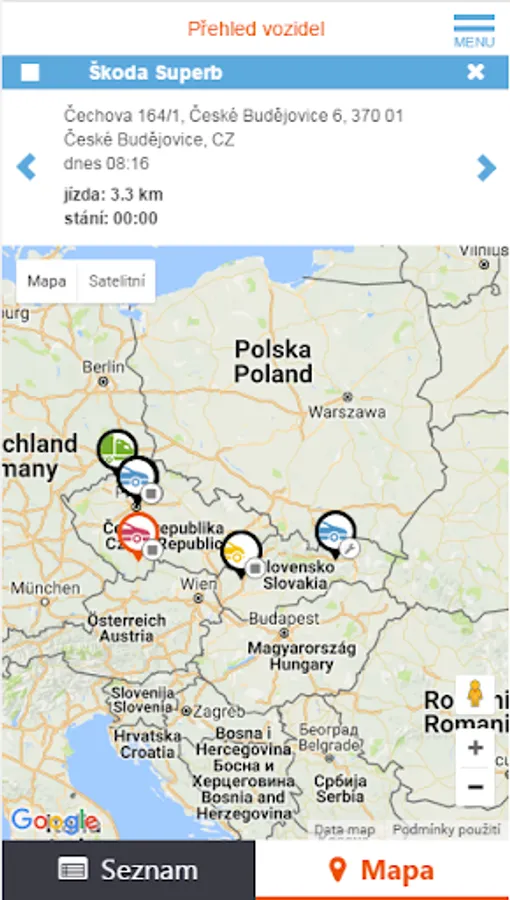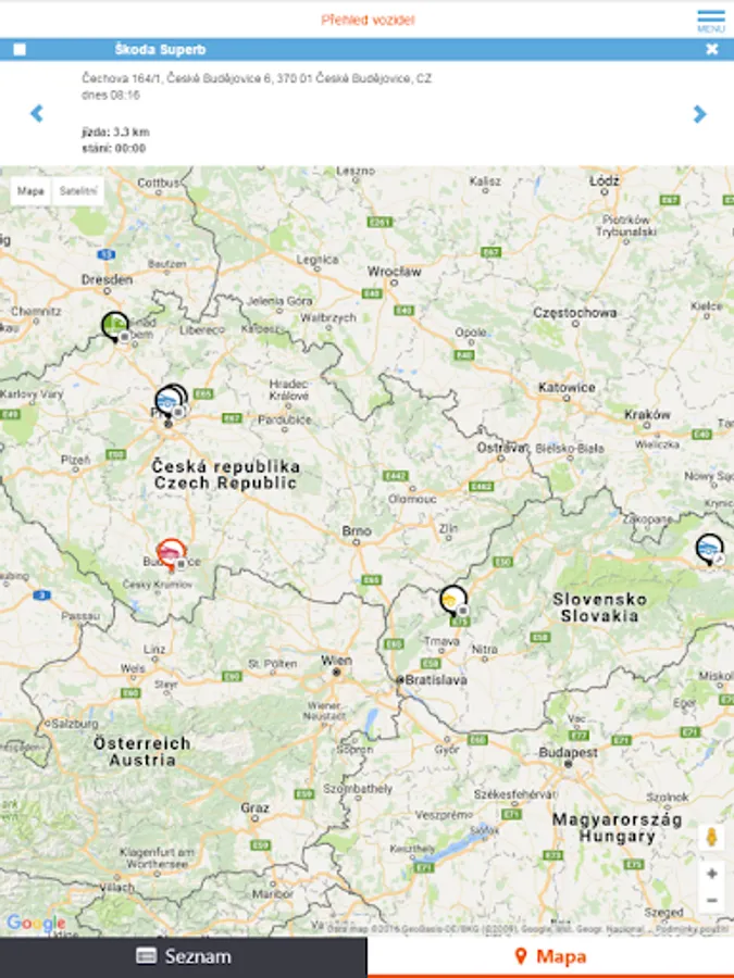 - locate individual vehicles on Google maps, incl. Street View