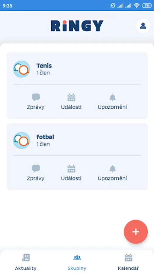 The Ringy mobile application is used to communicate between smaller and larger groups with each other but also with the "group leader". For example, a sports team - coach, parents of students - teacher. Parents of children - circle leader.